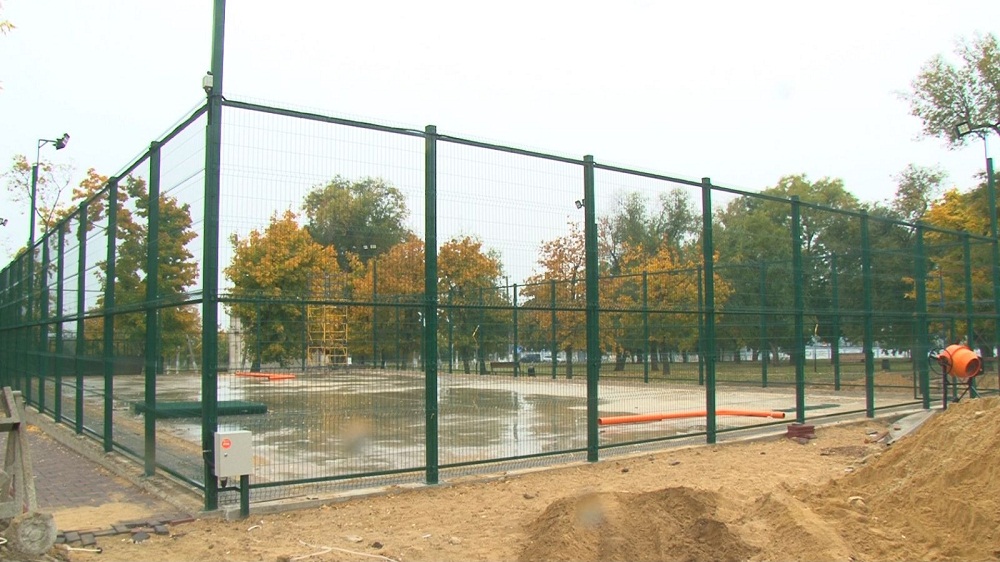 Парк Энергетиков уже украшают ярко-зеленое футбольное поле и современная баскетбольная площадка. Здесь установили специальные ограждения, новые светильники для освещения спортивных зон, благоустроили территорию тротуарной плиткой. Строители работают в любую погоду, стараются, чтобы успеть к назначенным срокам.