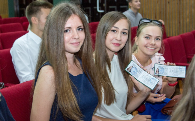 Вручали студенческие билеты заведующие кафедр и кураторы академических групп. В этом году студенческие билеты получили 86 студентов, из которых 39 медалисты.