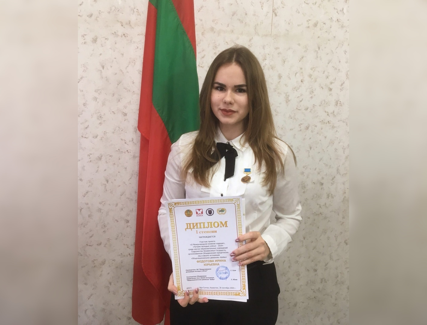 Презентация сборника и церемония награждения призеров проекта по традиции проходят в рамках Международно-практической конференции в Доме министерств в г. Нур-Султане. За внесенный вклад в развитие науки и образования студентка ПГУ Ирина Федотова была награждена медалью «Лучший молодой ученый СНГ – 2020» и дипломом I степени. Кроме того, за оказанную поддержку в проведении исследования, организацией было направлено благодарственное письмо научному руководителю - Шеленге Наталье Анатольевне.