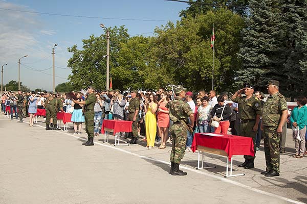 «На протяжении двух лет вы совершенствовали свои военно-профессиональные навыки, которые позволят вам в последующем пройти службу в Вооруженных силах. Впереди вас ждут очередные занятия, которые повысят ваш уровень боевой готовности. Вы — будущие офицеры Вооруженных сил Приднестровской Молдавской Республики. Я надеюсь, вы достойно пронесете знамя Победы своих дедов, прадедов, отцов», — отметил министр обороны, полковник Олег Обручков.