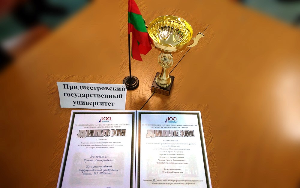 Тирасполь, 14 мая. /Новости Приднестровья/. Шесть студентов экономического факультета Приднестровского государственного университета им. Т.Г. Шевченко заняли третье место на Международной олимпиаде по истории экономических учений. Мероприятие прошло на площадке Финансового университета при Правительстве РФ в Москве.