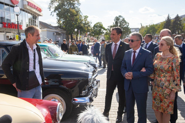 Сегодня старт движению по реконструированному участку улицы дали юные инспекторы и дети-автомобилисты. На специально выделенной площадке организована выставка ретро-автомобилей.
