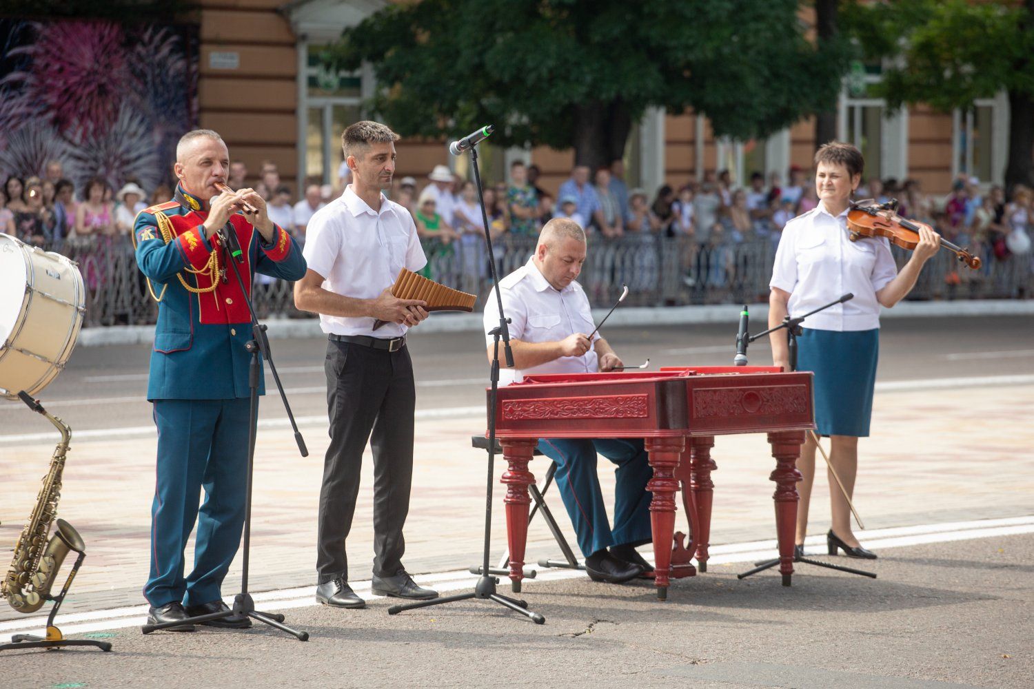 Тирасполь, 2 сентября. /Новости Приднестровья/. На главной площади приднестровской столицы состоялся праздничный плац-концерт, посвященный Дню Республики. Традиционный для таких выступлений тандем оркестра главного штаба Вооруженных сил и роты Почетного караула украсили юные артисты Студии танца «Надежда».