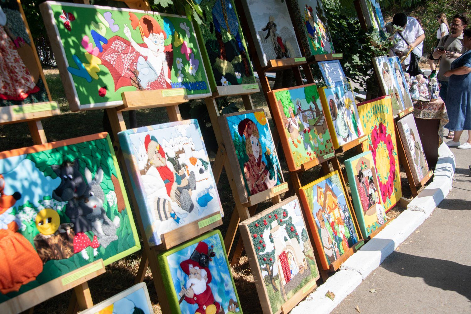 Празднование 230-летия со дня основания Григориополя продолжается. Президент с супругой прогулялись по парковым аллеям, пообщались с горожанами, познакомились с творческими работами местных умельцев. Внимание почетных гостей привлекла экспозиция, подготовленная сотрудниками Дома культуры села Карманово. Как рассказала директор ДК Наталья Стоян, на выставке представлены работы двух коллективов – «Умелые руки» и «Флористика». Супруги Красносельские спрашивали о технологии создания картин. Авторы – ребята 8-16 лет – работают по принципу вдавливания изображения, что придает ему объем и тем самым оживляет. Эту технологию участники Образцового коллектива «Умелые руки» начали осваивать лет пять назад. Сейчас в фондохранилище порядка трех сотен таких картин. Президент подчеркнул, что детские работы заслуживают отдельной выставки.