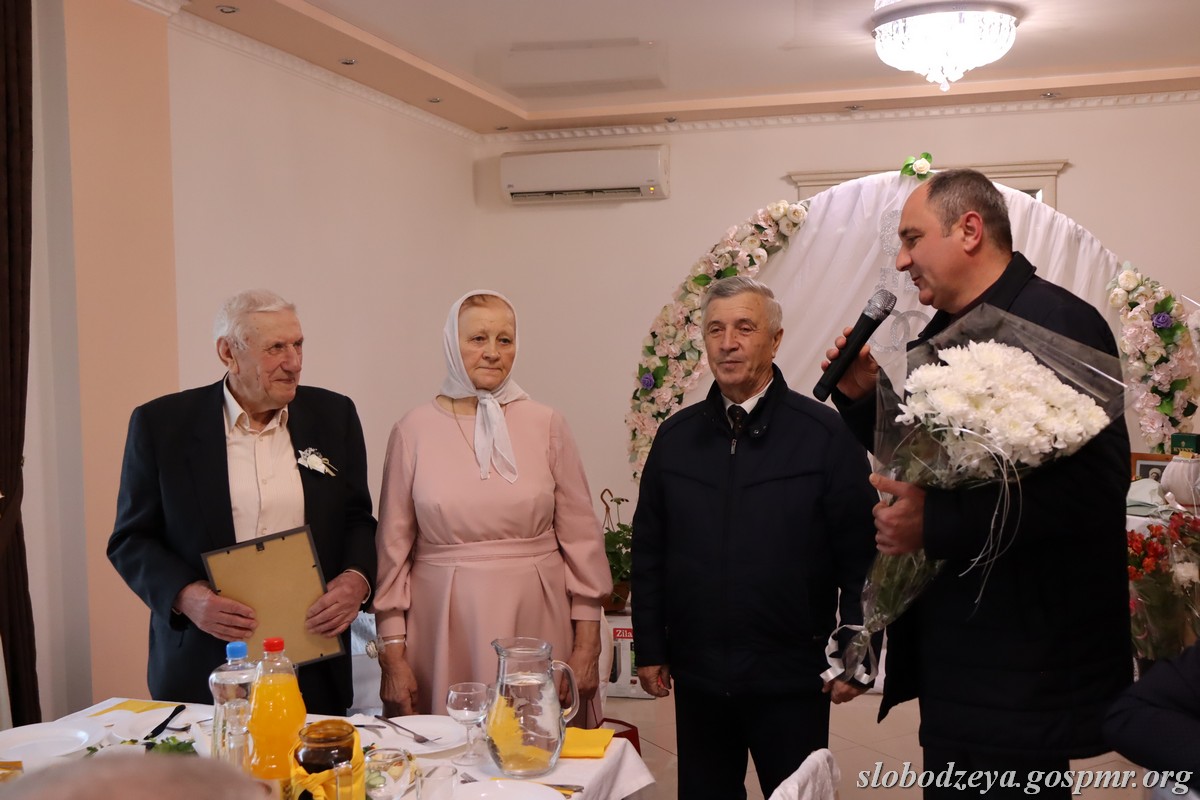 С юбилеем Николая Михайловича и Марию Ивановну поздравили глава Слободзейского района Василий Тищенко и его заместитель Сергей Самойлов.