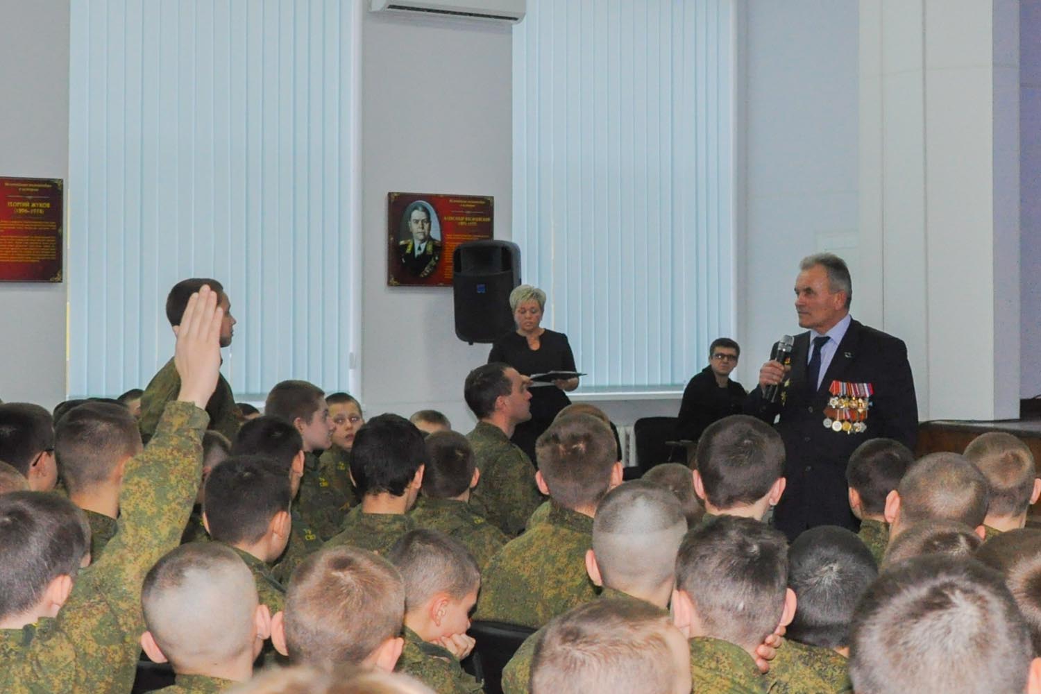 Затем с молодыми суворовцами пообщался Игорь Буга, он рассказал ребятам о причинах начала той войны и о своём боевом пути в горах Афганистана.