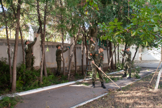 09 Окт.., 2019, 21:40Тирасполь, 9 октября. /Новости Приднестровья/. Воспитанники Тираспольского Суворовского военного училища совместно с Городским молодёжным центром приняли участие в субботнике, приуроченном к 227-й годовщине образования Тирасполя.