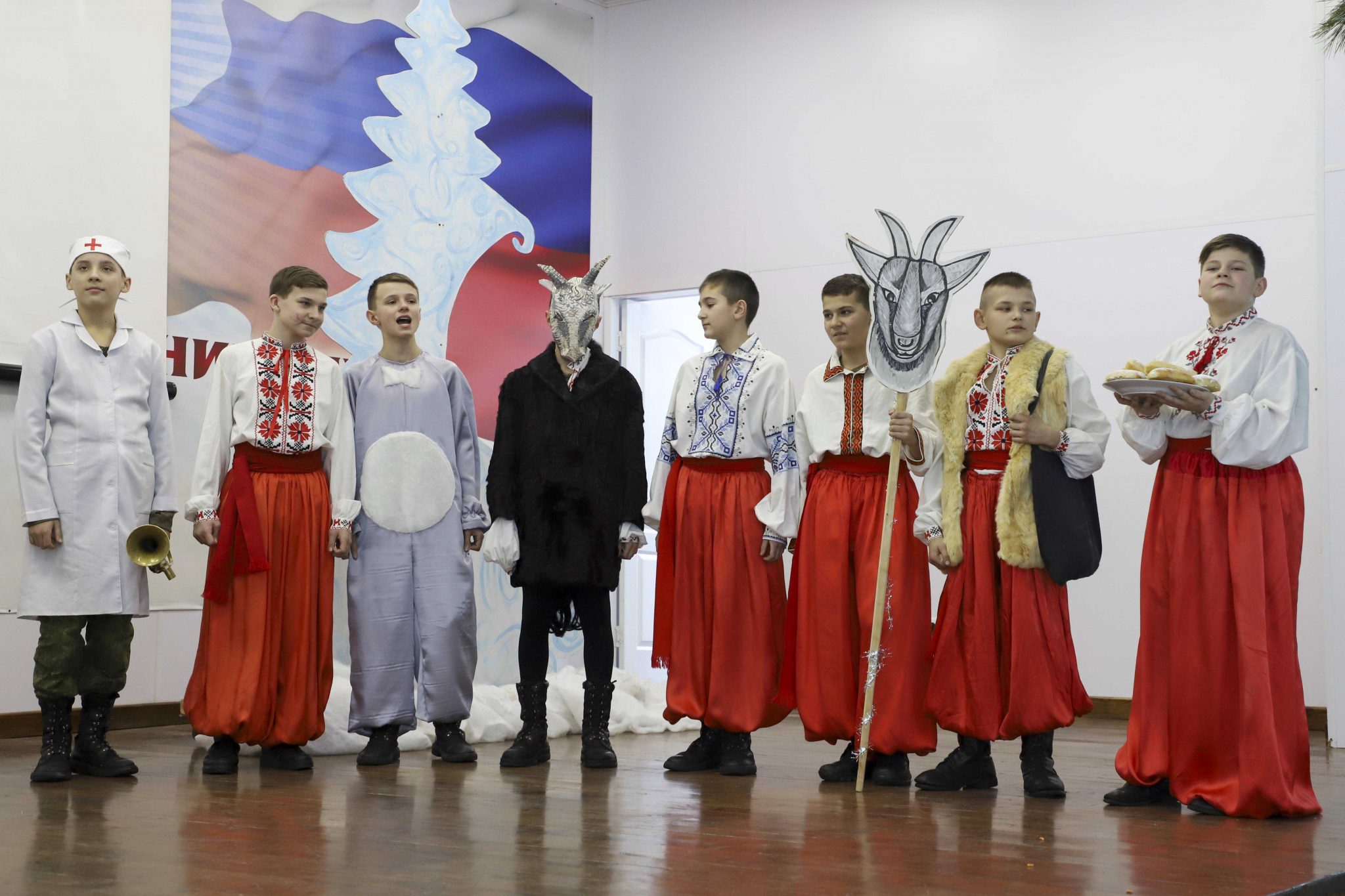 Во второй части программы суворовцы представили рождественские колядки. Мальчишки исполнили старинные песни, в том числе по украинской традиции с козой – символом урожая.