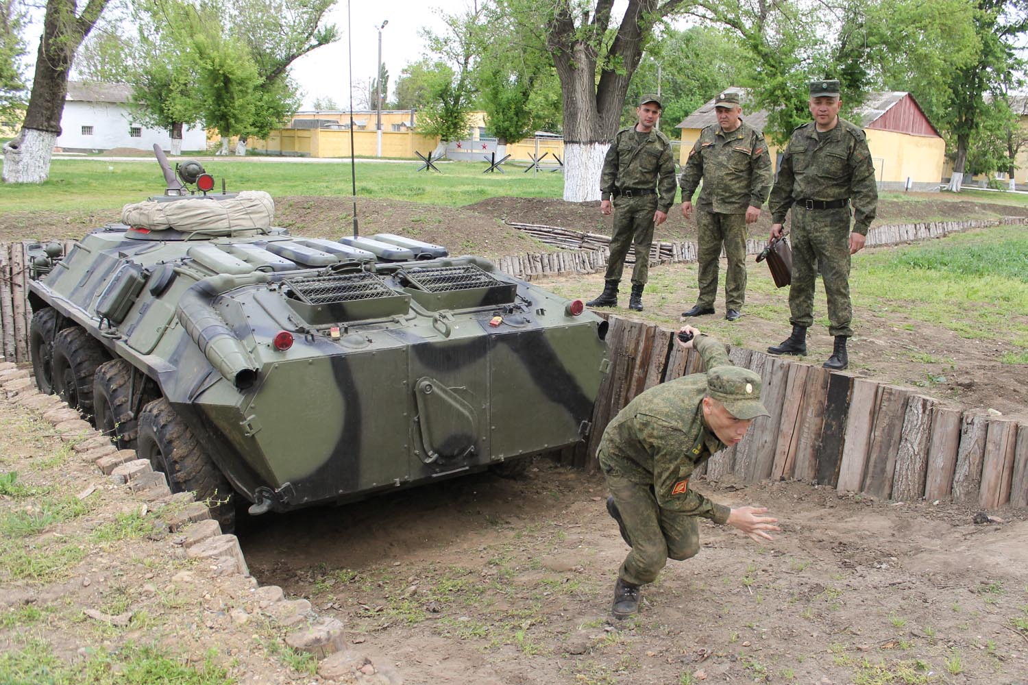 Одним из сложных испытаний было совершение марша с условным раненым на носилках. На другой учебной точке ребятам необходимо было надеть противогазы и цепочкой преодолеть «зараженный» участок местности. Один из самых зрелищных этапов – тактическая подготовка. Суворовцы поочередно спускались в траншею с задачей отыскать учебные гранаты, разложенные на огневых позициях, сложить их в ящик, проползти под бронетранспортером и метнуть гранату на дальность.