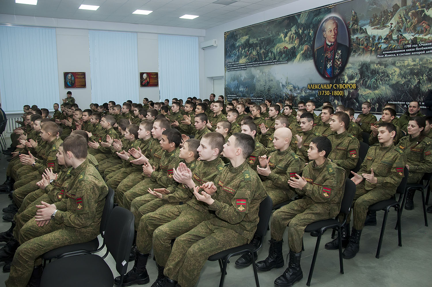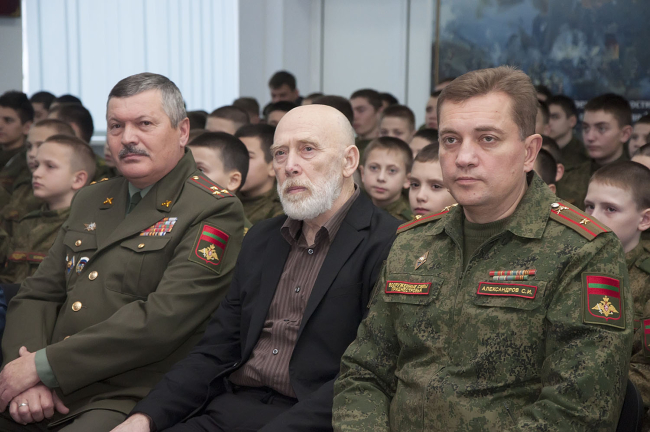 Тирасполь, 27 января. /Новости Приднестровья/. В Тираспольском Суворовском военном училище прошел классный час. На мероприятие пригласили исполняющего обязанности министра обороны полковника Сергей Герасютенко, представителей ОГРВ и известного творческого деятеля, а также защитника Приднестровья Владимира Мыцыкова.