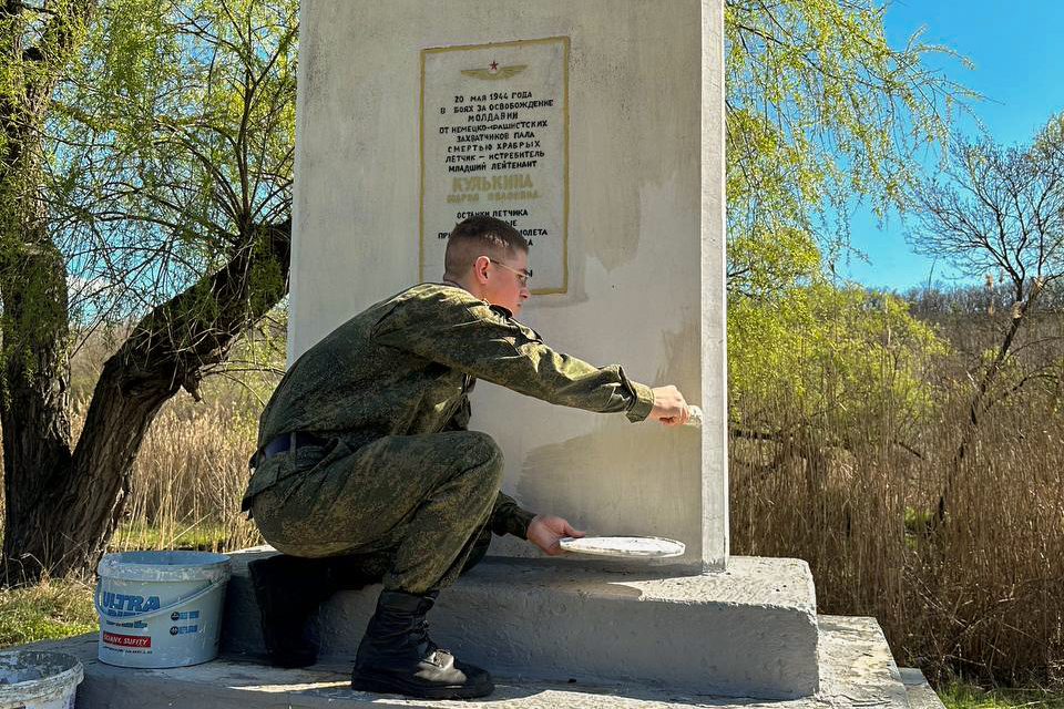 Офицеры-преподаватели и суворовцы наводили порядок у обелиска летчику-истребителю младшему лейтенанту Марии Кулькиной, расположенного в селе Дзержинское Дубоссарского района, а также у монумента воинам 47-й гвардейской стрелковой дивизии в селе Индия Григориопольского района.