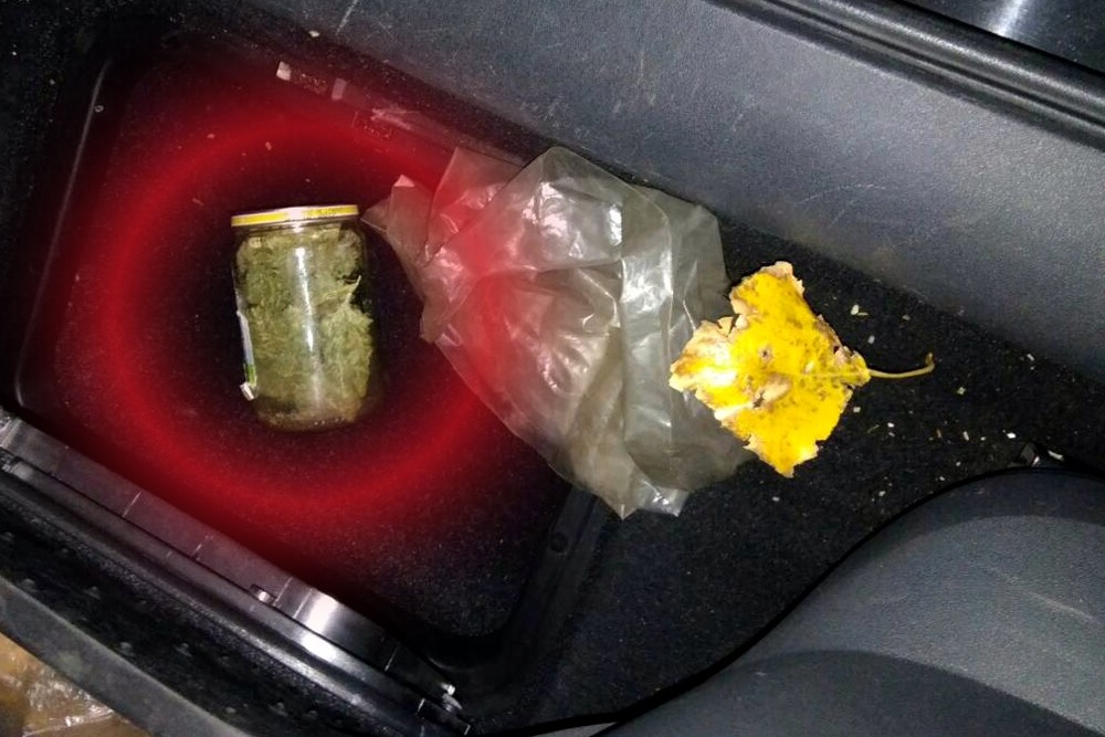 Таможенник обнаружил банку с наркодурманом в люке для инструментов под ковриком водительского сиденья. Мужчина признал, что сознательно сокрыл банку в труднодоступном месте, а также что использует её содержимое для личного употребления.