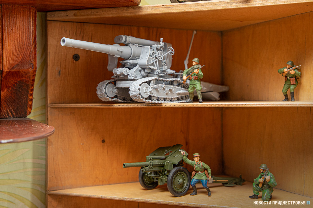 На прошлой неделе «Новости Приднестровья» рассказали о тираспольском коллекционере моделей бронетехники времен Второй мировой войны Валерии Титорове. Нам представилась возможность побывать у него в гостях и рассмотреть его коллекцию во всех деталях. Как признается коллекционер, всё началось с моделей отечественных боевых вертолётов. А потом кто-то подарил советский танк 30-х годов Т-26. И тут, как говорится, «понеслось». Сегодня коллекция насчитывает уже 87 едениц.