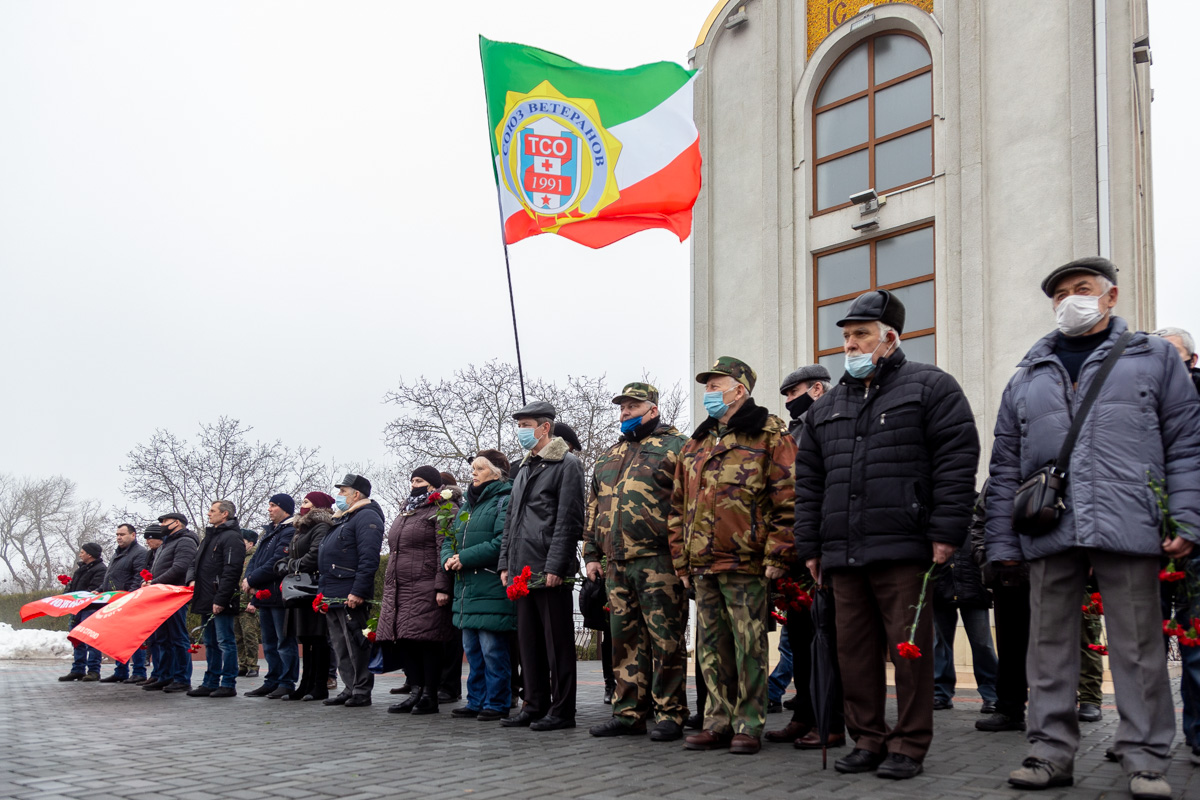 Отдать дань памяти погибшим бойцам, защищавшим нашу республику в начале 90-х годов, пришли ветераны ТСО, суворовцы, курсанты Военного института, студенты и жители города.