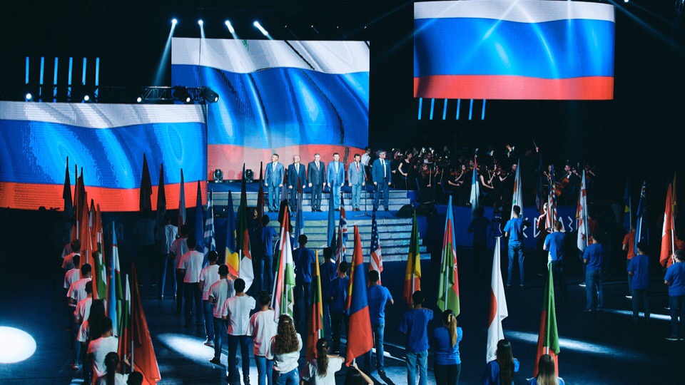 Лейтмотивом церемонии открытия стало объединение молодых людей всех национальностей и вероисповеданий. Сюжетная особенность – участие молодёжного симфонического оркестра и духового оркестра имени Л. и М. Ростроповичей, а также оркестра народных инструментов. Музыкальные коллективы представили лучшие образцы отечественной культуры.