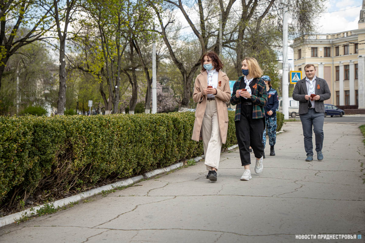 В Тирасполе ребята вручали прохожим маленькие символы Победы в знак уважения к ветеранам Великой Отечественной войны, в память о подвиге советского народа. Всего сегодня раздали порядка 1 000 георгиевских ленточек. Акция продлится до 9 мая.
