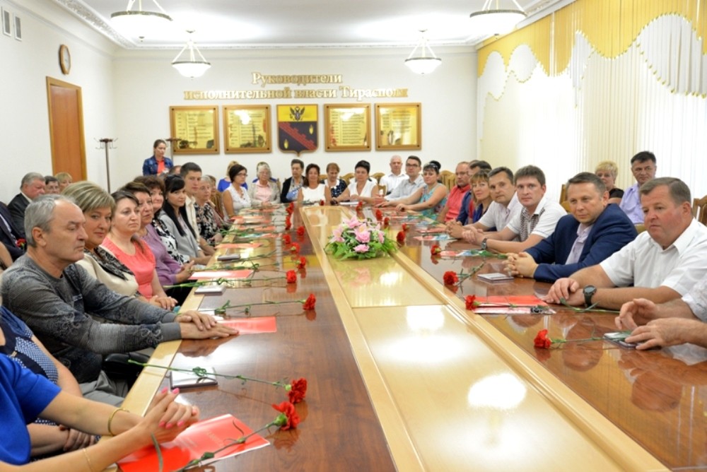 01 Сен.., 2017, 14:35Тирасполь, 1 сентября. /Новости Приднестровья/. В столичной госадминистрации награждали наиболее отличившихся в этом году тираспольчан. За большой вклад в защиту, становление и развитие ПМР, активную общественную деятельность, добросовестный труд, высокий профессионализм и в связи с 27-й годовщиной со дня образования республики были отмечены сотрудники госадминистрации, члены общественных организаций, учителя, директора образовательных учреждений, работники ЗАО «Тиротекс», ЗАО «Тираспольский хлебокомбинат» и многие другие.