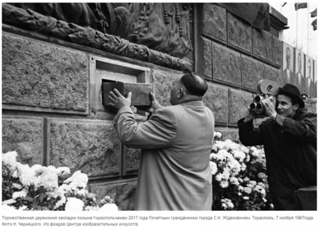Тирасполь, 9 февраля. /ИА «Новости Приднестровья"/. Столичный горсовет предлагает подготовить послание потомкам в честь отмечаемого в этом году 100-летия Октябрьской революции. Напомним, жители города уже оставляли его в центральной трибуне города в 1967-м, в честь 50-летия революции. Как рассказал сегодня на сессии депутат Олег Соколенко, есть обращения горожан, в том числе и тех, кто участвовал в этом, продолжить традицию.