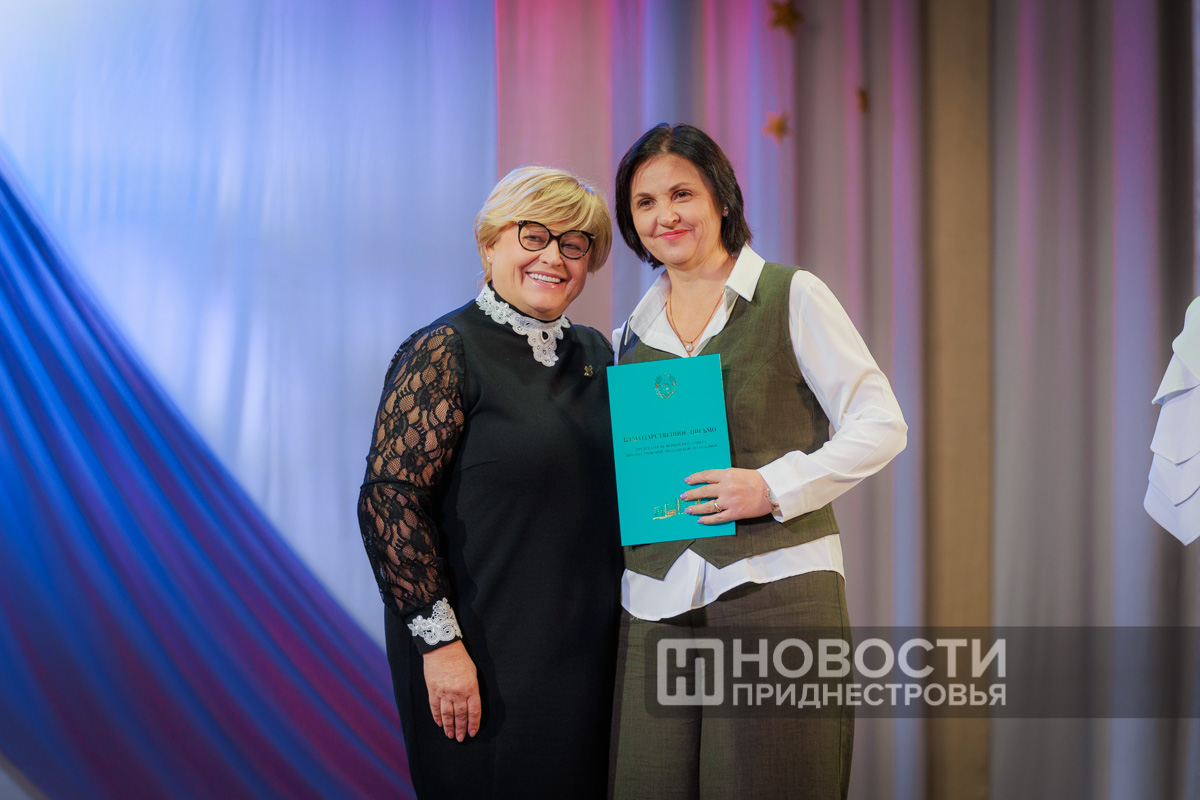 В продолжение мероприятия прошло награждение преподавателей, которые внесли весомый вклад в развитие колледжа. За особые заслуги и в связи с юбилеем наградили и Тираспольский аграрно-технический колледж – Галина Антюфеева вручила знак «За заслуги перед обществом» III степени.
