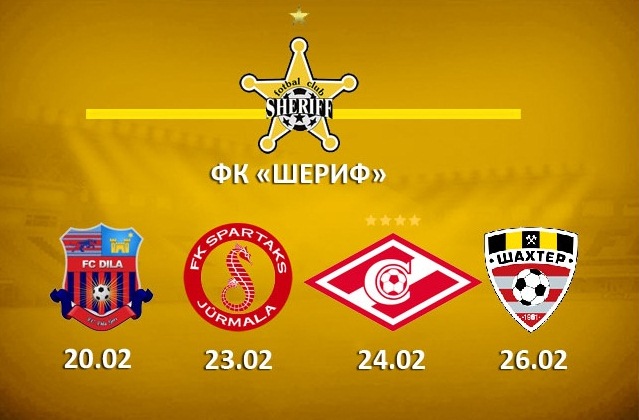 ФК «Шериф» сыграет 20 февраля с командой из грузинского города Гори «Дила». Через три дня соперниками «жёлто-черных» станет «Спартак» из Юрмалы. 24 февраля у тираспольской команды будет встреча с московским «Спартаком», а 26 февраля – с ФК «Шахтер» из Солигорска. Также уточняется, что ещё один соперник определится в ближайшее время.