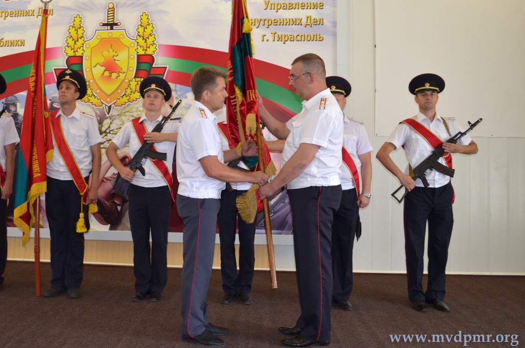 3 июля состоялась торжественная церемония прощания со Знаменем столичного УВД и передача Знамени «Лучшее территориальное подразделение МВД ПМР» из рук прежнего руководителя новому.