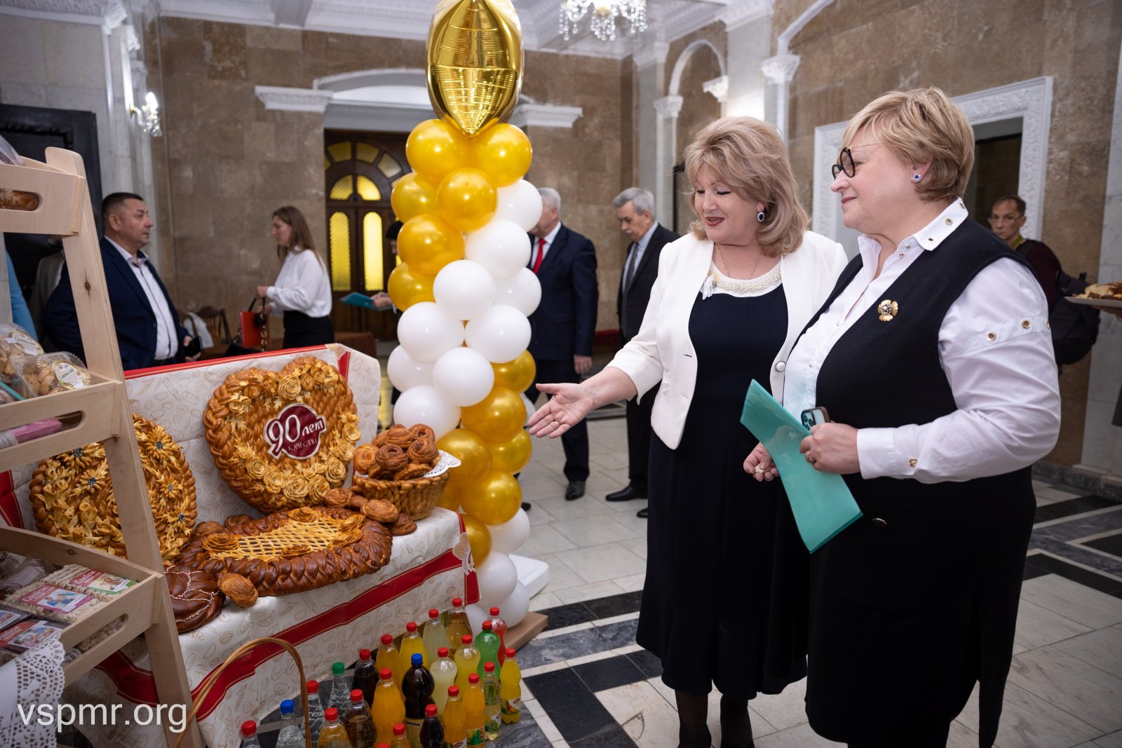 Тирасполь, 19 апреля. /Новости Приднестровья/. Тираспольский хлебокомбинат отмечает 90-летие. Главные торжества прошли в большом зале столичного Дворца культуры. Среди гостей праздника были зампредседателя Верховного Совета ПМР Галина Антюфеева и депутат Верховного Совета Илона Тюряева.