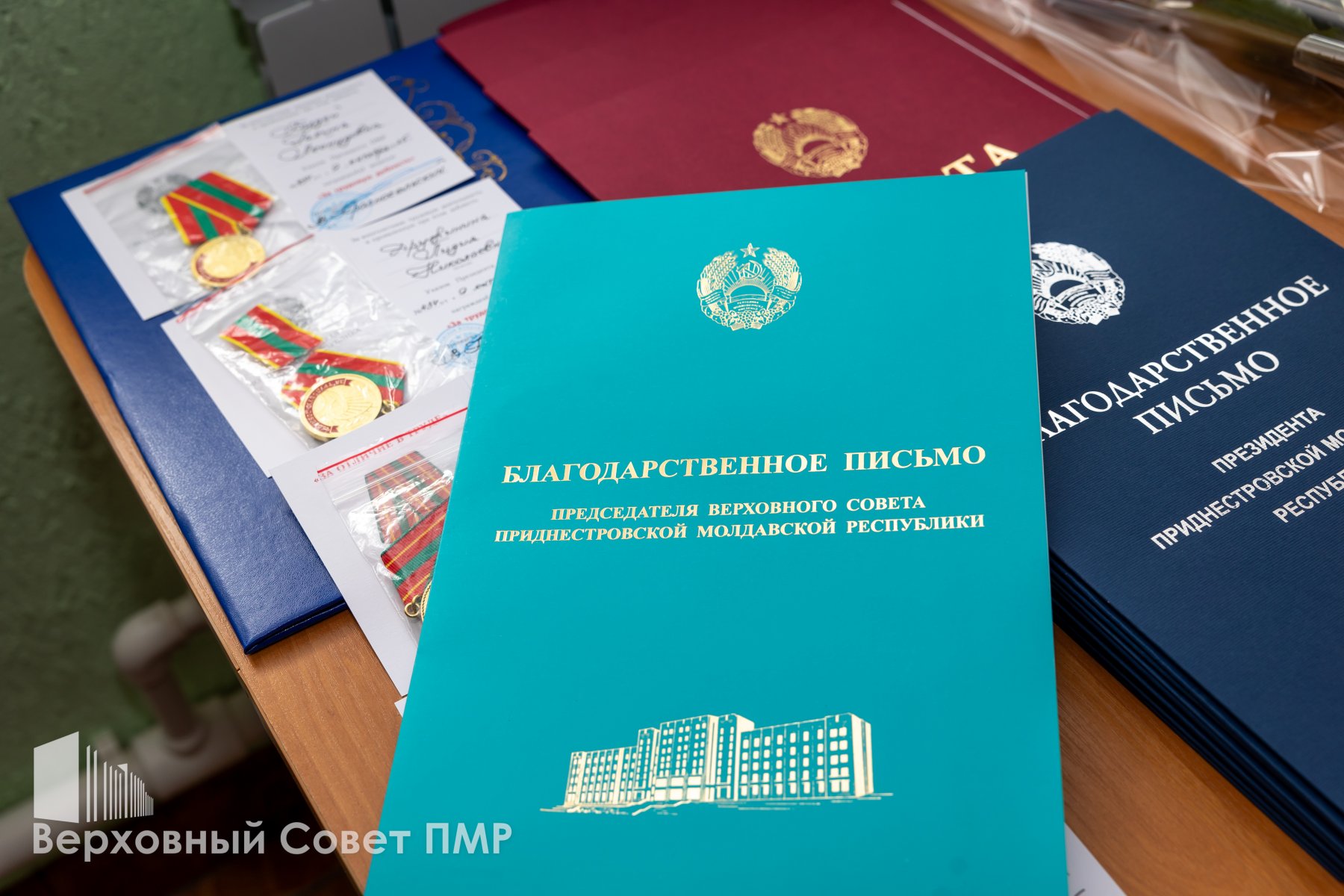 Вице-спикер парламента вручила работникам дома-интерната грамоты, благодарственные письма и большой торт. Министр по соцзащите Елена Куличенко наградила лучших сотрудников медалями «За трудовую доблесть» и грамотой Президента ПМР.