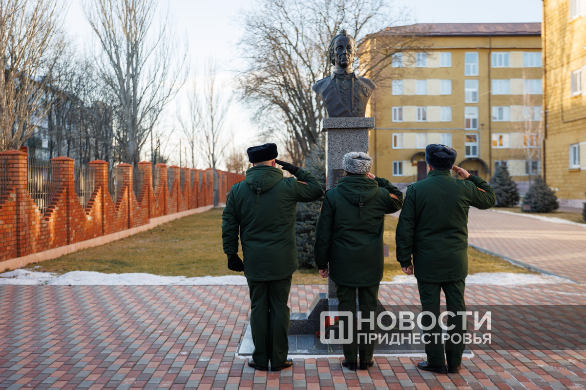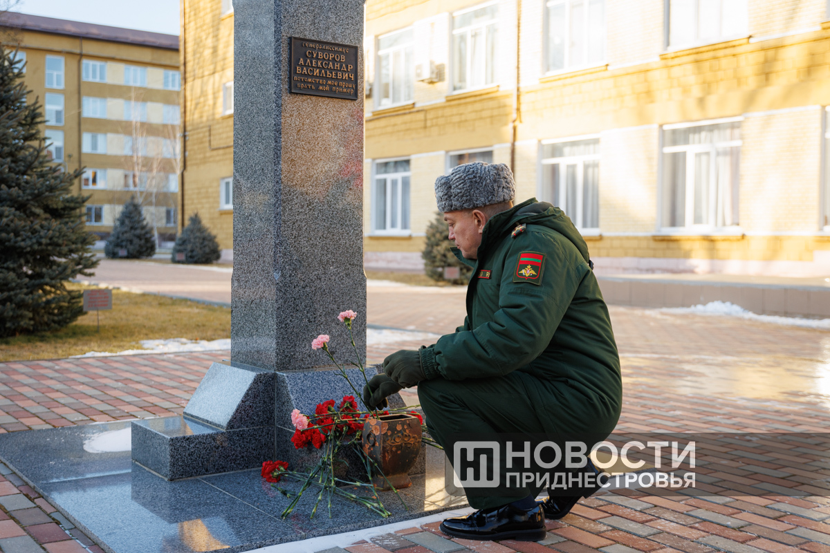 По традиции в начале торжественного мероприятия суворовцы исполнили гимн Приднестровья. После офицеры и суворовцы возложили цветы к бюсту легендарного полководца Александра Суворова.