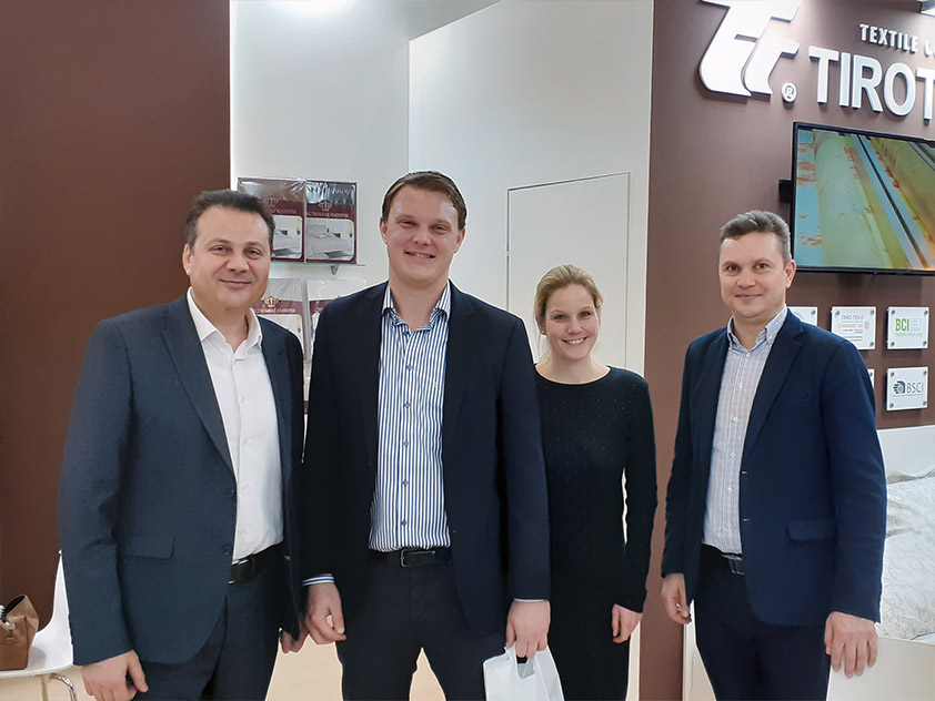 Стенд «Тиротекса» привлёк внимание гостей к новым структурам тканей, включая котонин – хлопок со льном, к печати глиттером и перламутром, к последним образцам цифровой печати, швейным изделиям, выпущенным на новой автоматизированной линии по вшиванию чипов. Потенциальных клиентов также заинтересовала возможность применения «улучшенного хлопка» на прядильно-ткацком производстве, поскольку недавно «Тиротекс» стал одним из членов BETTER COTTON INITIATIVE.