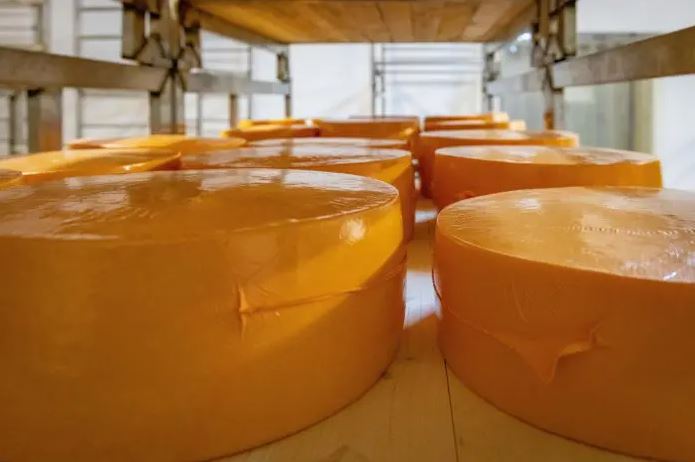 «"Голландский" сыр более острый, "Российский" – более мягкий. Сыр выпускаем на специальных линиях. Там есть: сыроизготовители, сывороткоотделители, прессы, солильные бассейны, камеры созревания и хранения. В них поддерживаем оптимальную температуру. В камерах созревания – +11...+12 градусов, хранения – до -4°С», – подчеркивает специалист.