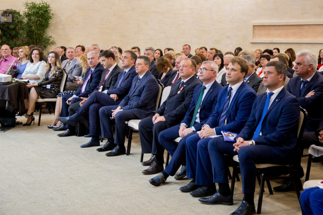 От имени Премьер-министра Александра Мартынова поздравил юбиляров Алексей Цуркан. Он передал Юрию Ганину приветственный адрес. В нем говорится, в частности, о взаимодействии Правительства и Палаты. Так, в прошлом году было подписано соглашение о сотрудничестве, руководство высшего исполнительного органа госвласти и ТПП регулярно проводили встречи, совместно утвердили «дорожные карты», направленные на улучшение условий ведения предпринимательской деятельности и поддержку экспортеров. К слову, члены ТПП также входят в состав Совета по развитию малого и среднего предпринимательства при Правительстве.