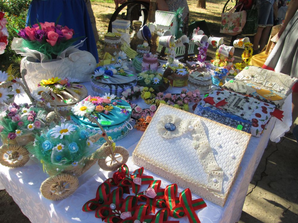 В сквере Ленинского комсомола открылась выставка сувенирной продукции: там пестрят самые разнообразные предметы декоративно-прикладного искусства, скрапбукинга, живописи, плетения, и цветоделия.