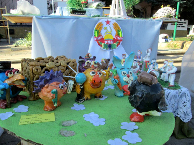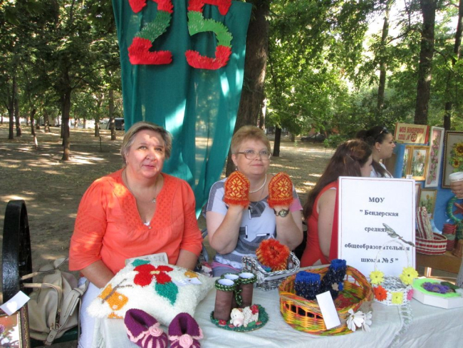 02 Сен., 2015, 14:09На площади Освобождения для жителей открылись ярмарочные подворья и выставки творческих коллективов Дворца детско-юношеского творчества, на которых представлены поделки в самых разнообразных техниках: глиняные изделия, модели судов, резьба по дереву, вышивки, рисунки и многое другое. Огромным каравем весом почти в 200 кг порадовали жителей бендерские пекари, не остались в стороне и производители пива - они организовали целую выставку пивной продукции.