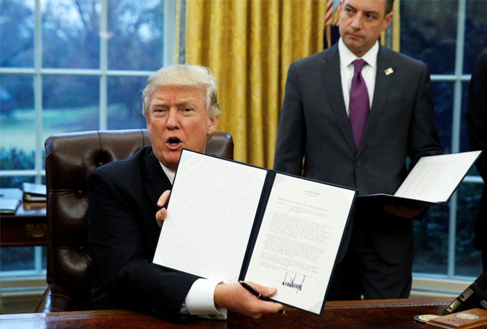 Ранее Трамп неоднократно заявлял о намерении выйти из Транстихоокеанского партнерства, которое он называл «потенциально катастрофическим для США. Вместо этого он обещал «договариваться о справедливых двусторонних торговых сделках, которые вернут рабочие места и промышленность обратно на американские берега».