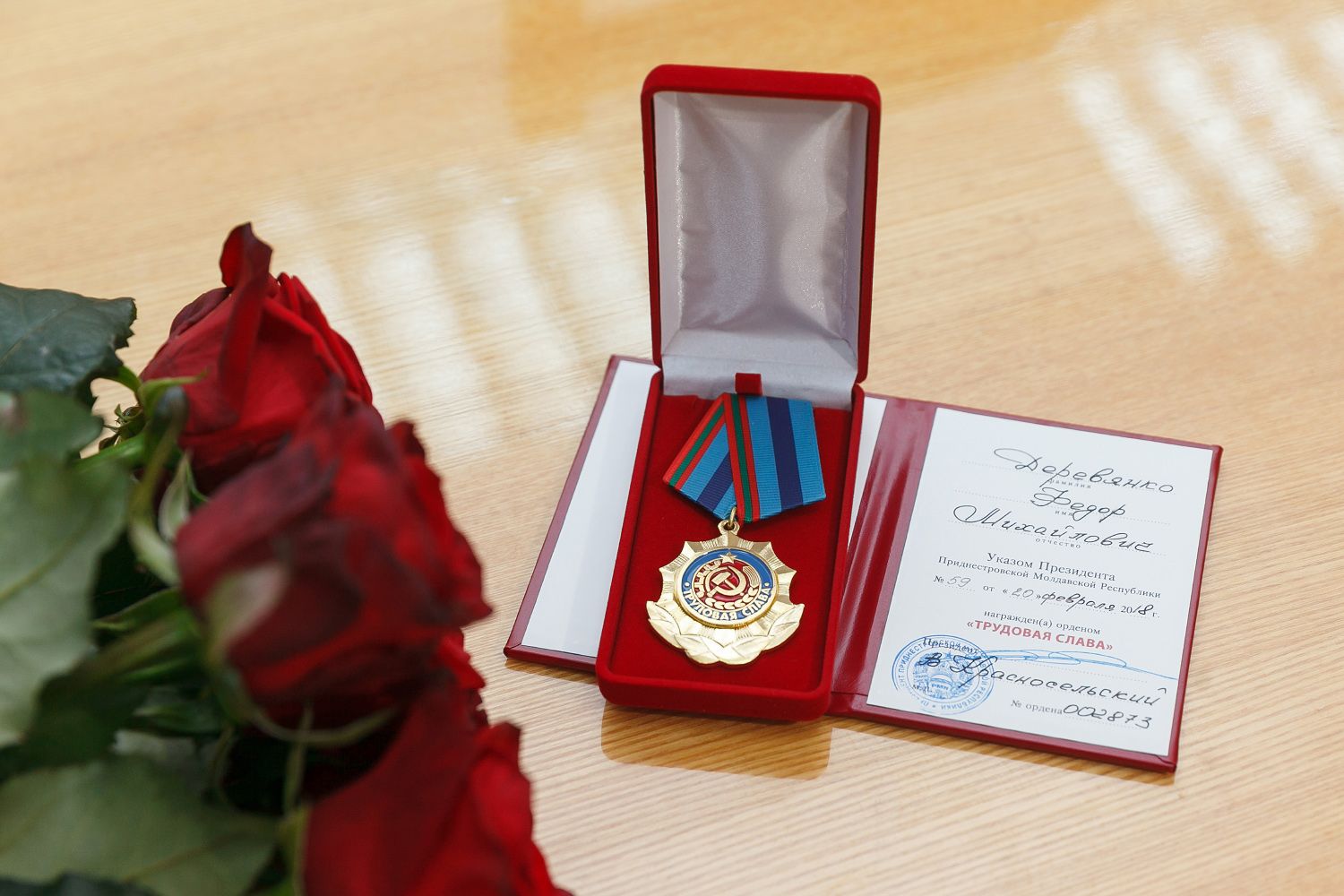 Награду Фёдору Деревянко вручил Президент ПМР Вадим Красносельский