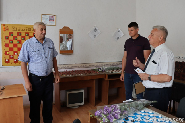 «Вы не только развиваете спортивный потенциал учащихся, но и воспитываете в них дисциплину, честность, настойчивость и ответственность, качества, которые остаются с человеком на всю жизнь. Заслуженно пользуетесь уважением среди коллег, воспитанников, их родителей и жителей города Слободзея. От всей души желаю вам крепкого здоровья, семейного благополучия и новых ярких побед и на шашечной доске, и в жизни», – сказал депутат Верховного Совета ПМР Павел Шинкарюк, также прибывший поздравить именинника.