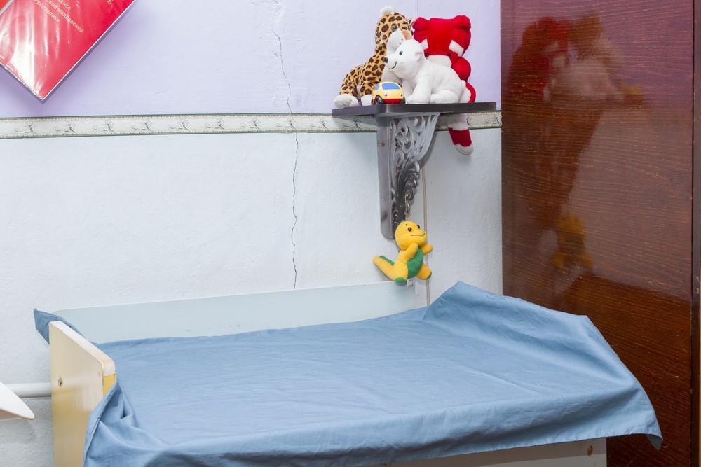 А в ФАПе с. Приозёрного – прогнившие перекрытия на потолке, неработающая водопроводная система (воду носят вёдрами), на стенах - трещины толщиной в палец и такие же дыры в оконных рамах. Зимой в детском отделении малышей даже раздевают не до конца, чтобы из-за сквозняков и слабого отопления они не простудились. А ещё здесь работают только в светлое время суток, потому что свет есть не во всех помещениях.