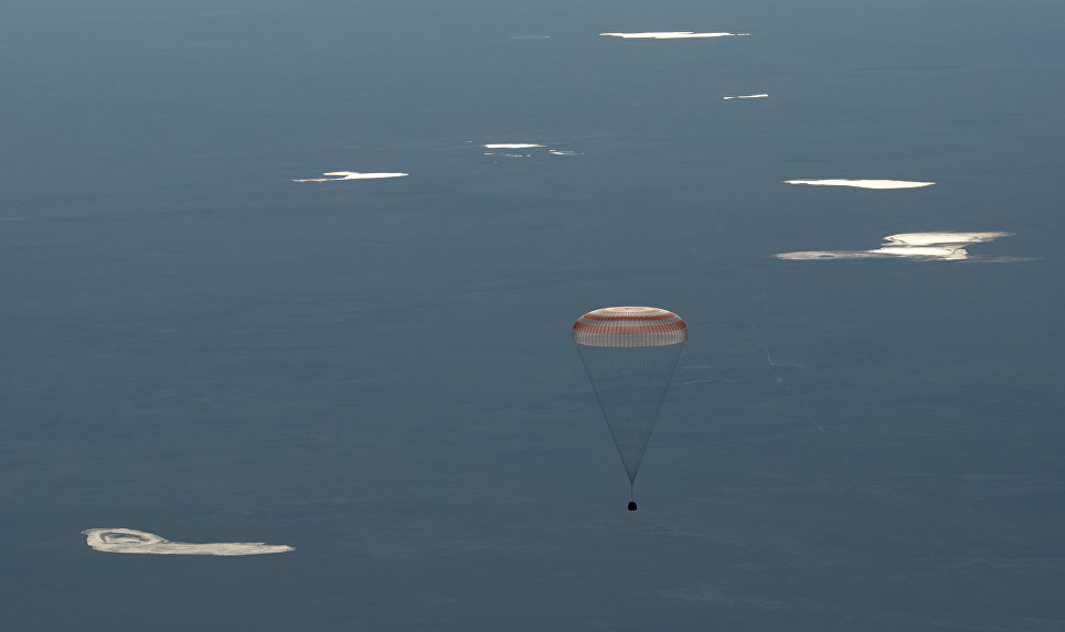 Корабль отстыковался от МКС в 12:16, а его двигательная установка включилась на торможение в 14:48. В 15:17 корабль вошел в плотные слои атмосферы. В 15:26 была дана команда на открытие основного парашюта.