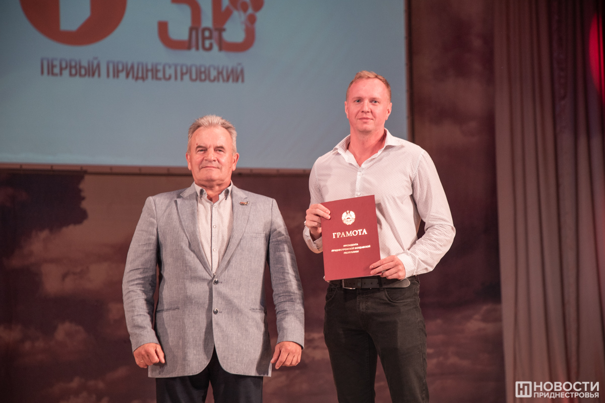 Первый Президент Приднестровья Игорь Смирнов также присоединился к поздравлениям. Отметил, что в зале находятся ветераны отрасли, те, кто 30 лет назад стоял у истоков создания приднестровского телевидения. Особое внимание уделил неоценимому вкладу Бориса Акулова, который на тот момент возглавлял Государственный комитет по информации и печати при Верховном Совете, а также первому редактору телевидения Людмиле Шульге.