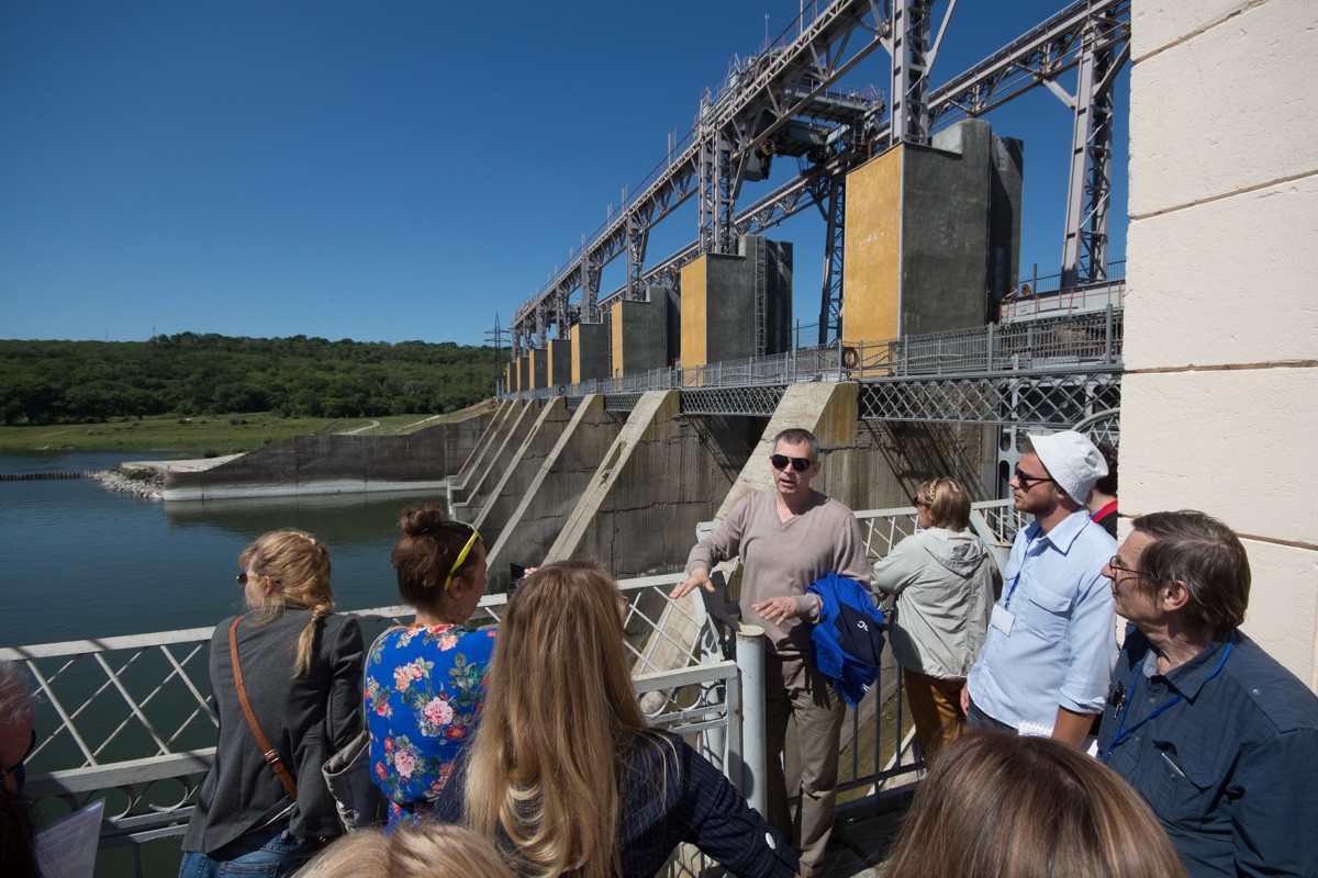 Но настоящий сюрприз ждал «туристов-экспертов» внутри «тела» плотины. Спустившись на глубину около 12 метров, они оказались в длинном туннеле, пройдя по которому можно с одного берега реки попасть на другой. Так что теперь туроператоры и журналисты могут смело сказать, что им довелось погулять по дну Днестра и выйти оттуда сухими.