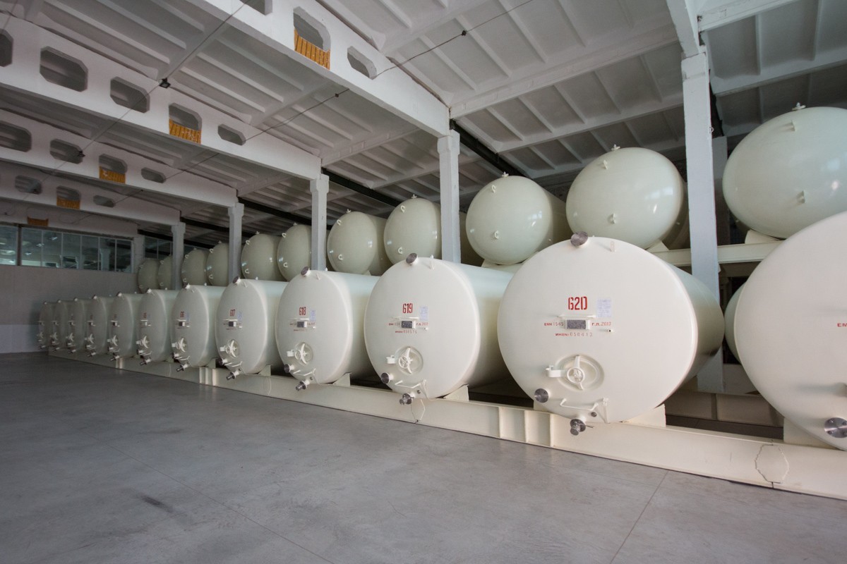 Предприятие в сезон загружено на полную мощность. В винных цехах стоит новейшее итальянское оборудование Della Toffola – две линии производительностью до 15 т виноматериала в час каждая. Вино при разной температуре зреет в специальных емкостях общим объемом 60 тыс. литров.