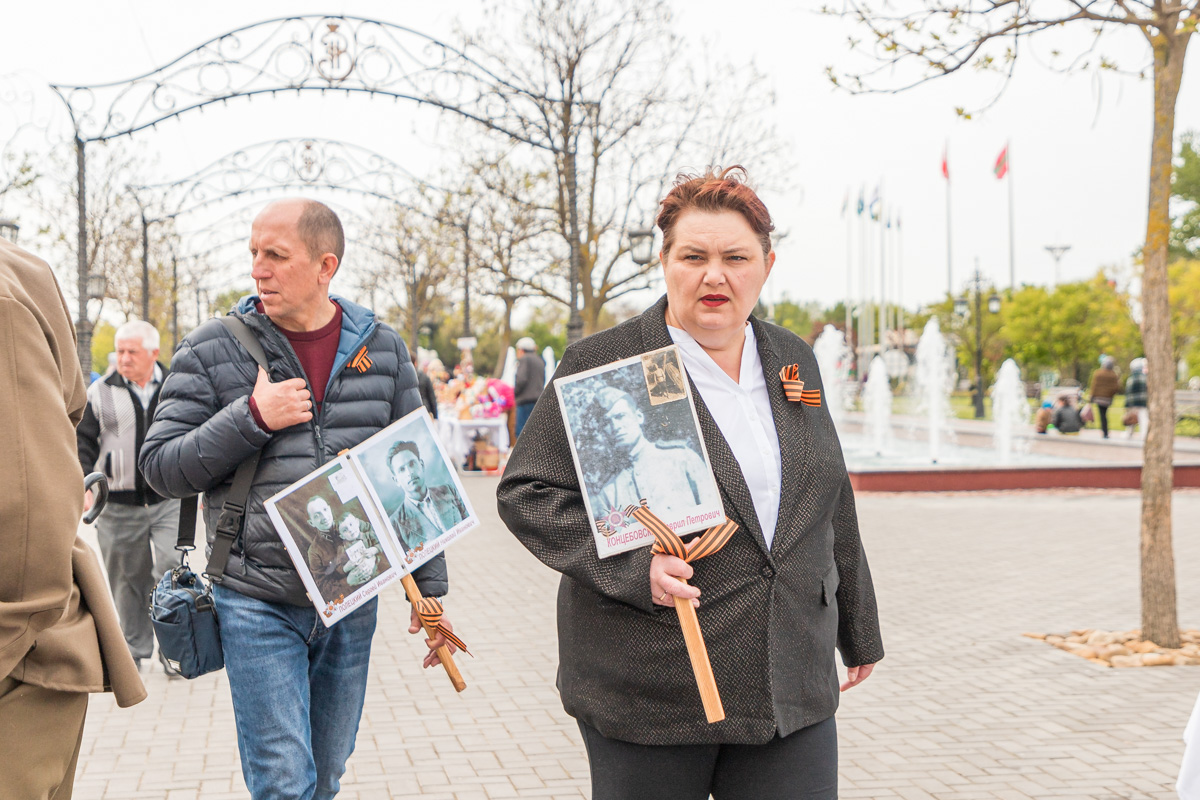 Тираспольчанин Виталий вместе с сыном Модестом внимательно рассматривают картины с изображением военных событий. Мужчина говорит, что благодаря победе советского народа над фашизмом все мы живы. Разговаривает с сыном о Великой Отечественной войне. Ребёнок знает, что победил советский народ и какой дорогой ценой досталась Победа.