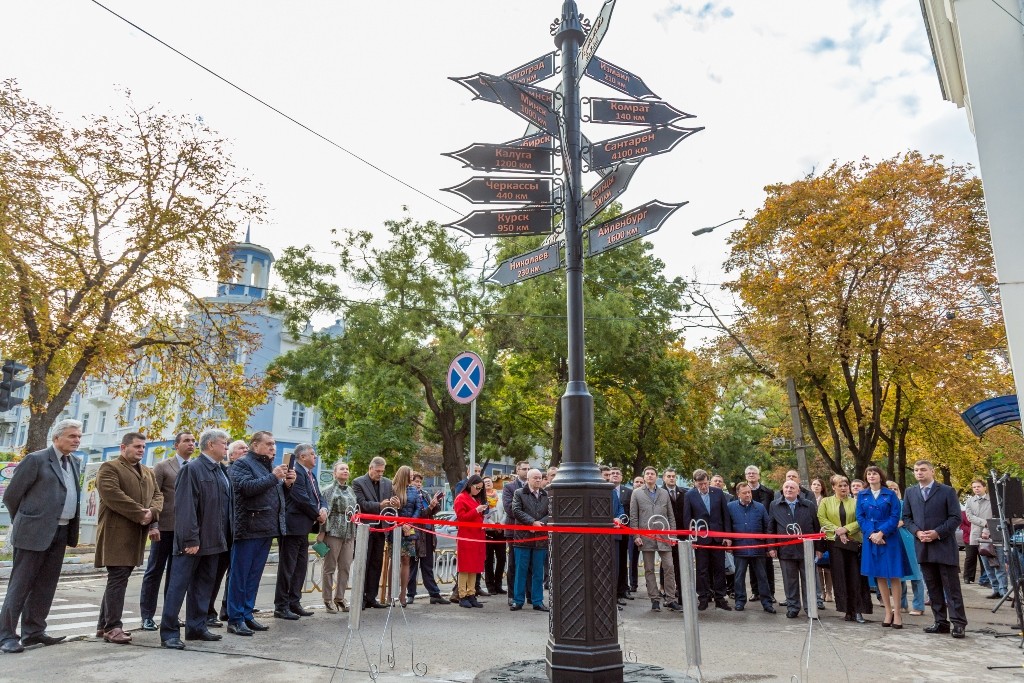 У главпочтамта Тирасполя появился памятный знак-указатель с названиями городов-побратимов