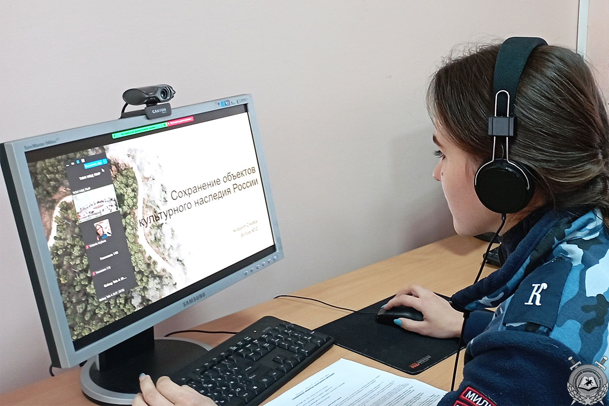 Курсант 2-го курса Юлия Булгак раскрыла тему «Сохранение объектов культурного наследия России». Работу она представила на круглом столе «Культурное наследие Русского мира».