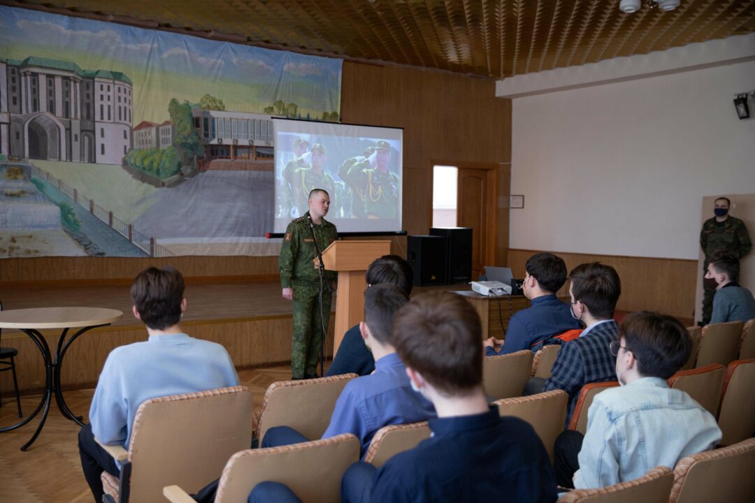 Лицеистам показали презентационный видеоролик об учебном заведении. Учащиеся смогли задать интересующие вопросы и узнать о преимуществах обучения в единственном военном вузе республики.