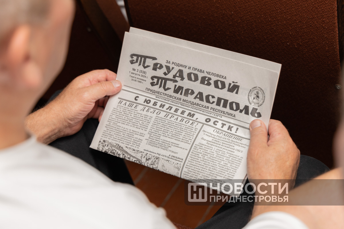 Первый Президент ПМР Игорь Смирнов напомнил, что молодому поколению важно сохранять и беречь свою культуру, родной язык и уважение к людям вне зависимости от их национальности. Делать это так, как в своё время делали члены ОСТК. Он подарил Владимиру Емельянову коллаж с архивными фотографиями. Они будут напоминать о людях, без которых сложно было бы представить работу забастовочного движения.