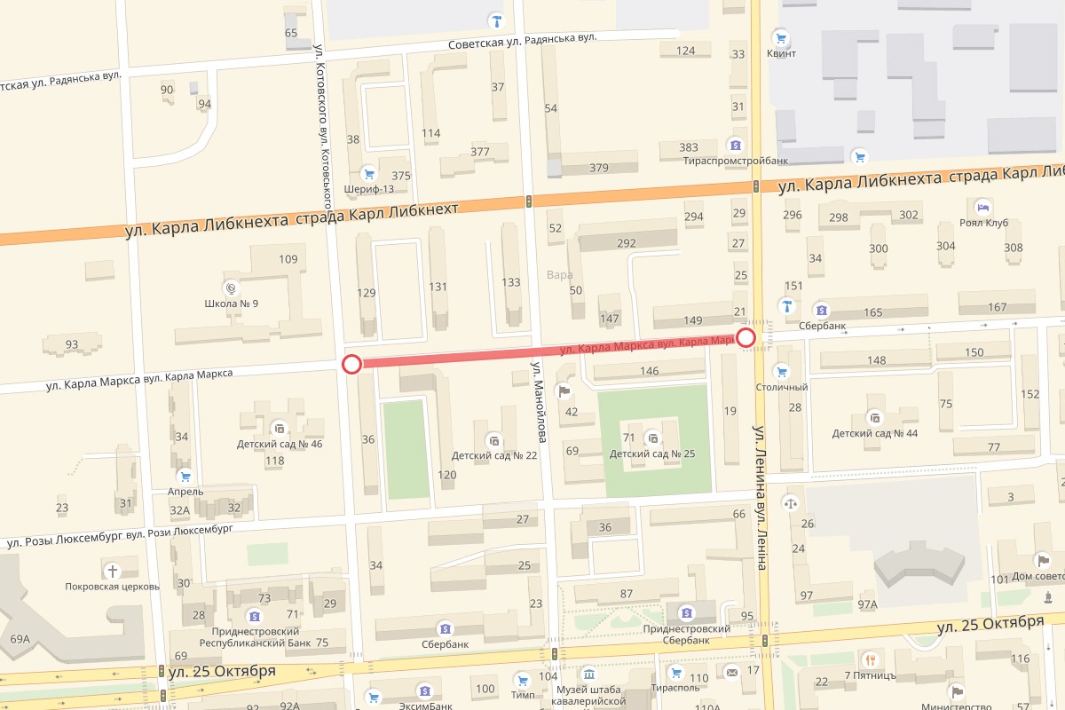 Участок дороги по улице К. Маркса в Тирасполе перекрыт до 11 июля