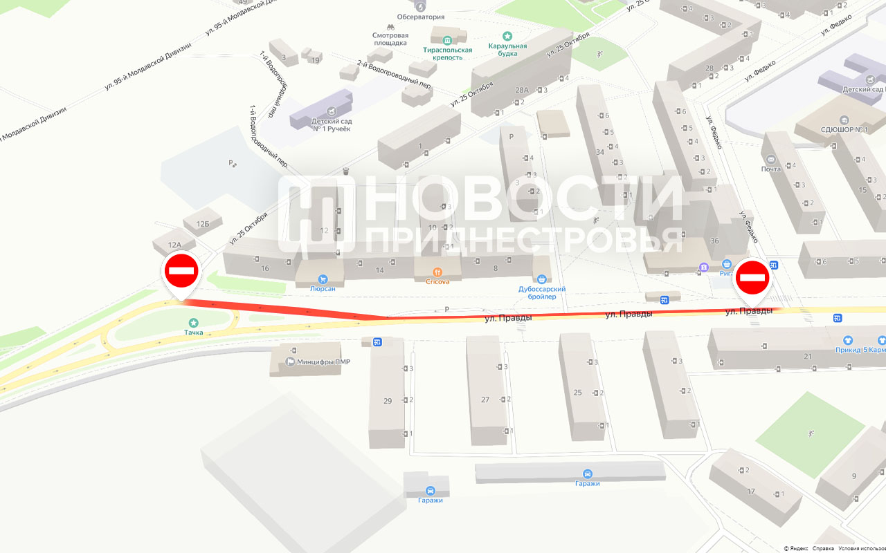 Тирасполь, 3 октября. /Новости Приднестровья/. В Тирасполе завтра, 4 октября, с 8:00 частично перекроют движение транспорта по улице Правды на участке от пересечения с Федько в сторону Покровской (25 Октября).