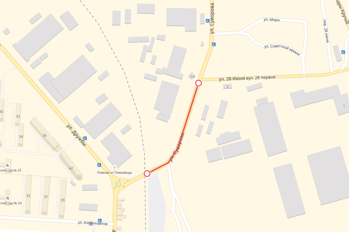 04 Сен.., 2018, 11:38Бендеры, 4 сентября. /Новости Приднестровья/. Улица Суворова в Бендерах на участке от улицы 28 Июня до железнодорожного переезда перекрыта до 15 сентября включительно.