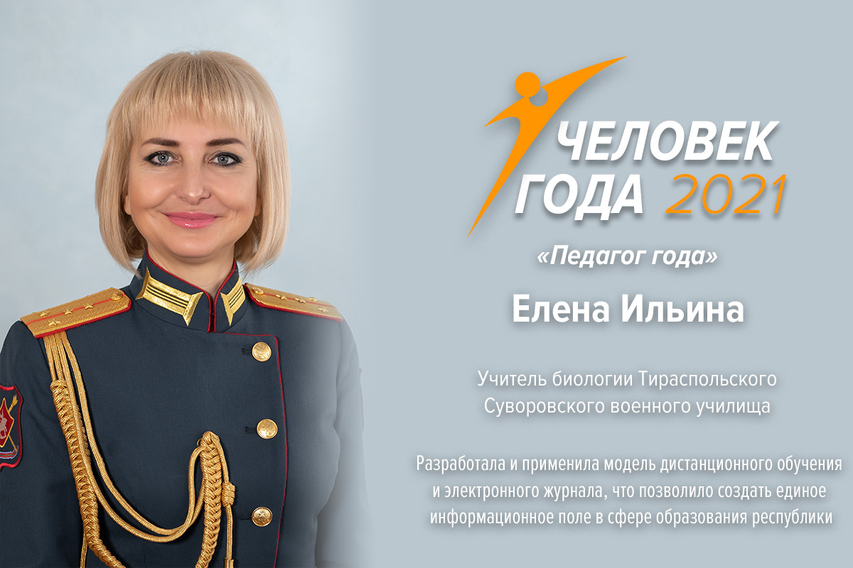 Тирасполь, 26 февраля. /Новости Приднестровья/. Лучшим педагогом года признана первый заместитель начальника – начальник учебного отдела, учитель биологии ГОУ «Тираспольское Суворовское военное училище» Елена Ильина. Ей вручили статуэтку победителя, медаль и диплом лауреата конкурса «Человек года – 2021».